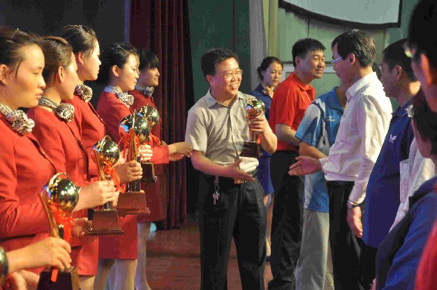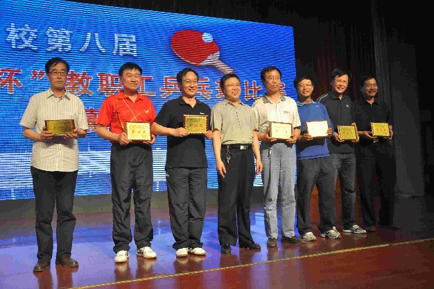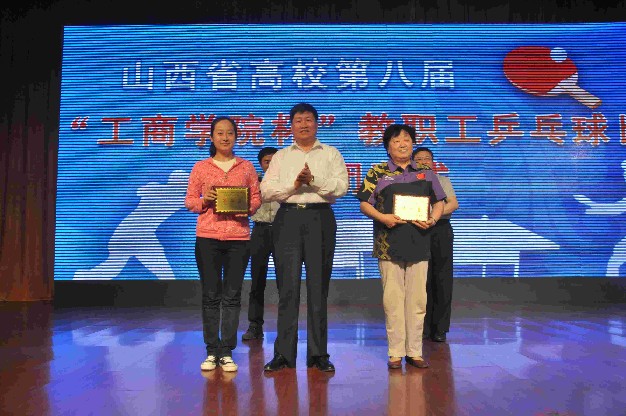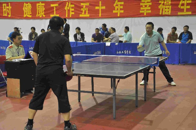 上一图集:农工党山西省第六次代表大会集锦二 下一图集:我校举办第七届“商学院杯”健美操大赛集锦浏览次数:1098次 发布时间:2012/5/165月12日~14日,由教育厅主办、我校承办的山西省高校第八届“工商学院杯”教职工乒乓球比赛在文体馆举行。山西省教育厅副巡视员武保旺,我校院长牛三平出席开闭幕式并致辞。比赛现场四周悬挂着各参赛高校的校旗,以及比赛主题“健康、友谊”、“每天锻炼一小时,健康工作五十年,幸福生活一辈子”等大型标语。塑胶场地上 10张幽绿的乒乓球桌案,被印有“山西工商学院”蓝色围栏整齐划分成10个赛区。为保证竞赛的公平、公正、严肃、权威,比赛举办方不仅在赛前对参赛运动员进行了严格的资格认定,而且在赛中认真参照执行了国家体育总局最新审定的《乒乓球竞赛规则》。开幕式上,运动员入场仪式结束后,来自全省29所知名高校的44支代表队分别进行了抽签,接下来来自全省的各路教职工乒坛高手,就校处级领导团体赛、教工团体赛、教工男子单打、教工女子单打、校级领导男子单打、校级领导女子单打等六个项目的冠亚军展开了激烈的角逐。做为此次比赛的承办方,我校主场作战,分别派出两支代表队共11名选手参与了此次比赛名次的争夺。14日下午,为期三天的竞赛最终尘埃落定,各类奖项均名花有主。我校分别荣获了本届乒乓球竞赛的突出贡献奖、体育道德风尚奖、高校体育工作引领奖,我校副院长陈教兰力克劲敌,斩获领导组女子单打冠军,成绩斐然。