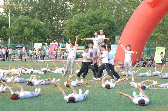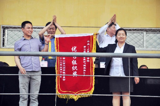 上一图集:山西省高校第八届“工商学院杯”教职工乒乓 下一图集:第十届“金融杯”交谊舞大赛集锦浏览次数:1539次 发布时间:2012/5/19 5月18日下午,“山西工商学院第七届‘商学院杯’健美操大赛”在我校体育场拉开了帷幕。省教育厅文体处任向东处长应邀观摩比赛并做了重要讲话,校领导学院董事长、牛三平院长、陈教兰副院长、李常仁院长助理、张中华院长助理出席观看了大赛,二级学院院长、党总支书记以及学校各处室负责人观看了此次比赛。 在主持比赛大会的商学院院长张遂宣布运动员代表队入场后,学校国旗护卫队威武英俊的小伙子们,以军人的身姿率先进入运动场,赢得在场观众阵阵喝彩。接下来10支参赛代表队身着各具特色、闪亮炫目的服装,依次精神抖擞地走过主席台和观众席,顿时鼓掌声、欢呼声和呐喊声响彻在一起。 入场式后进行了升国旗、唱国歌和升校旗、唱校歌仪式,全体在场观众起立和运动员一道行注目礼。接着,商学院党总支书记张文英致开幕词。他讲到,学校文体活动是素质教育的基础,是学校精神文明建设和校园文化建设的重要组成部分,本次健美操大赛将是对同学们体育水平、身体素质、精神风尚的一次检阅。在校团委副书记李慧宣布大赛开始的口令下达后,充满动感和韵律的健美操比赛正式拉开帷幕。 伴着激情澎拜的音乐,本次比赛的10支参赛队伍给在场的观众带来了一场视觉盛宴。动感的旋律,统一的服装,变换的队列,矫健的舞姿,激情四射的表演展示了力与美的和谐统一。参赛选手们踏着轻快的舞步,释放着激情与活力,刚劲与温柔的交替,展现了我校大学生的青春与活力。比赛气氛高潮迭起,各个学院的拉拉队在赛场两侧呐喊助威,选手的执着,观众的热情,使整场比赛洋溢着青春活力的气息。特别是会计学院终结者代表队,在迅速而敏捷的动作变换充分展示着健美操的力量与美感同时,不断将表演队形排列成“1986”、“2000”、“2004”、“2009”、“2011”数字阵容,以诠释学校走过的建校、迁校、高职、高校、升本的光辉历程,动作设计上的独树一帜,得到了评委和观众的高度赞赏。 比赛过程中,由特邀国家一级健美操裁判王莹教授、赵明哲、燕鹏以及我校宁志云老师等7人组成的评委,进行了严格认真的评判。 各代表队表演比赛结束后,学校陈教兰副院长宣布了比赛结果:会计学院代表队获得一等奖,奖励活动经费2000元;音乐传媒学院、商学院第一代表队获得二等奖,各奖励活动经费1500元;金融学院、酒店管理学院、成教学院获得三等奖,各奖励活动经费1000元;通才教学部、理工学院、艺术设计学院、商学院第二代表队获得优秀奖,各奖励活动经费500元。卢伟获得最佳创意奖;李志飞获得优秀指导老师将。商学院荣获优秀组织奖。 比赛大会结束时,省教育厅文体处任向东处长作了重要讲话,他说,开展积极向上的健美操大赛,是创新发展校园文化建设的重要组成部分,也是培养学生“德、智、体、美、劳”全面发展的有效形式。今天的健美操比赛,可以说是一次激情昂扬的盛会,山西工商学院的同学们以整齐的步伐、宏亮的口号、标准的动作、飒爽的英姿,演奏出了莘莘学子团结进取、奉献拼搏的主旋律;这是一次才艺展示的盛会,各代表队精心设计的创意、多姿多彩的服装、舒展矫健的表演、耳目一新的效果,展现出了热血青年青春靓丽的风采;这是一次展望未来的盛会,同学们刻苦训练的品格、认真参赛的态度、服务大局的情怀、争先创优的精神,反映出了当代大学生积极向上充满希望的精神风貌。总结本次健美操大赛成功之处,我用五句话来概括,即广大师生“在思想情操方面得到了健康熏陶,在身体素质方面得到了体能锻炼,在纪律作风方面得到了严格强化,在团队合作方面得到了检阅考验,在个性才艺方面得到了充分展示”,实现了举办健美操大赛的预期目标。最后,任处长代表省教育厅祝愿山西工商学院校园文化活动更加丰富多彩,祝愿健美操大赛这一传统体育运动项目越办越好,祝愿广大师生在体育锻炼中促进综合素质的全面提升,同心携手共创山西工商学院的美好未来。以优异的成绩迎接党的十八大胜利召开。 据悉,为搞好这次健美操大赛,学校方方面面给予了大力支持,商学院在组办本次健美操大赛中,作了大量的前期准备和大赛会务工作。各二级学院积极组建参赛代表队,挑选出精兵强将进行演练。大赛前期,参赛选手们在课余放弃了休息时间,都经过了刻苦的培训与排练。健美操指导老师们为给现场观众带来风格多样、创意独特的健美操表演,标新求异,精心编排比赛节目,可谓用心良苦。在师生们的共同努力下,我校第七届“商学院杯”健美操大赛,充分展示了我校大学生健美操独特的魅力,为观众舞出一幕幕精彩的画面,最终完美落下了帷幕。