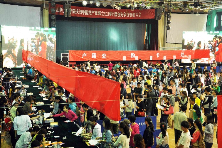 2012年9月8日至9日,山西工商学院迎新入学工作正式拉开帷幕,2012级3200余名本科生怀揣梦想、满怀希望陆续来校报到。在校的学院领导牛三平、徐阳生、陈教兰、李常仁、张中华亲临迎新现场检查指导工作。8个二级学院和部分教学、行政部门的领导与教职员工以及学生志愿者计500余人在迎新第一线参加了迎新服务。