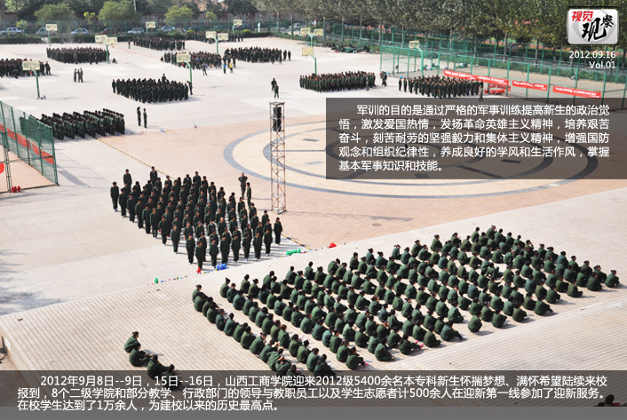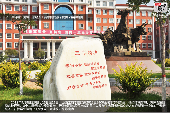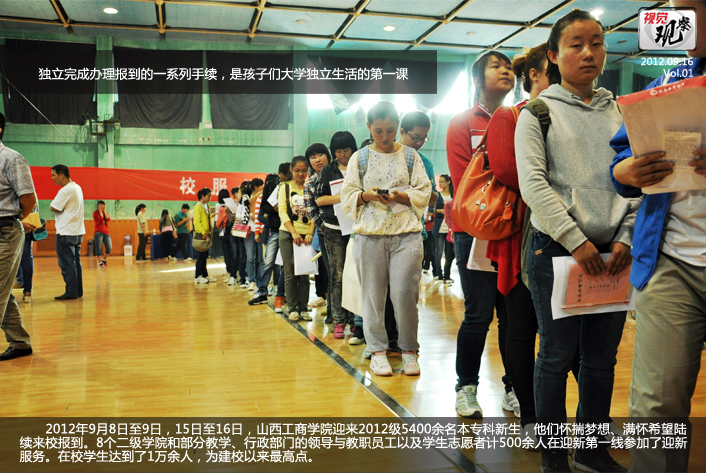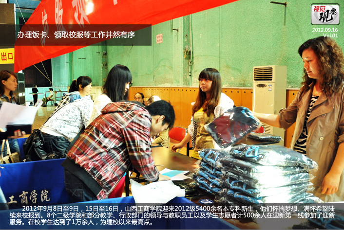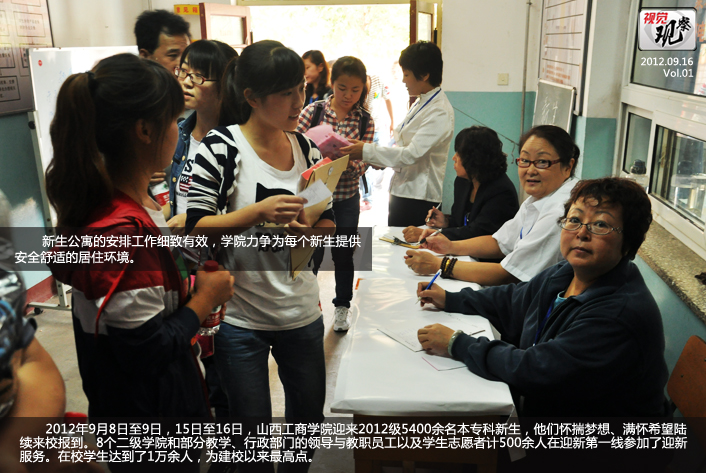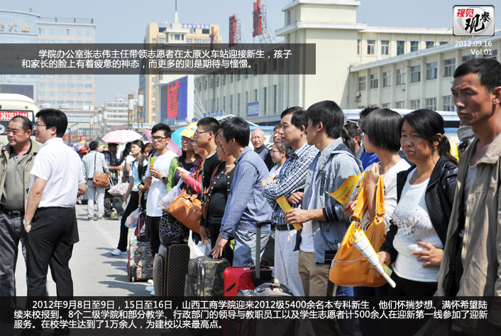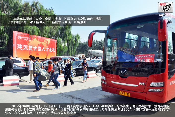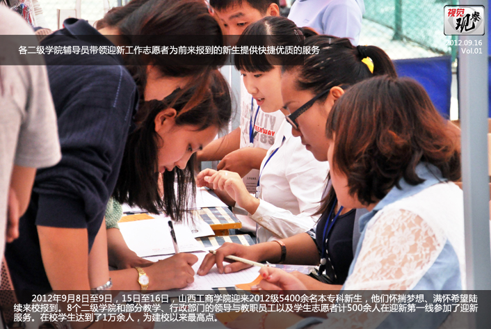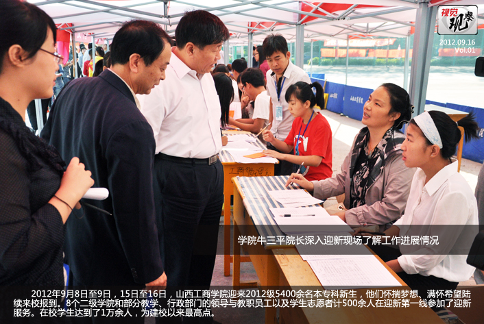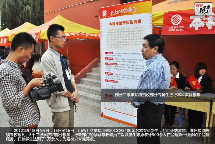 2012年9月8日至9日,15日至16日,山西工商学院迎来2012级5400余名本专科新生,他们怀揣梦想、满怀希望陆续来校报到。8个二级学院和部分教学、行政部门的领导与教职员工以及学生志愿者计500余人在迎新第一线参加了迎新服务。在校学生达到了1万余人,为建校以来最高点。