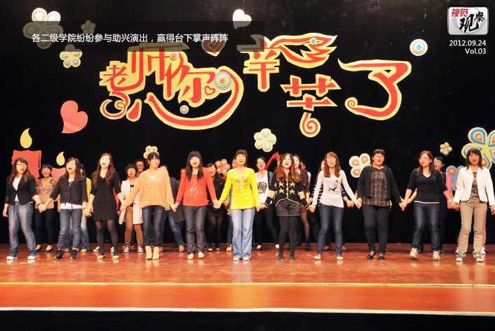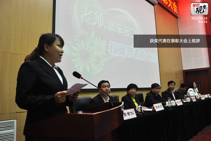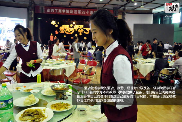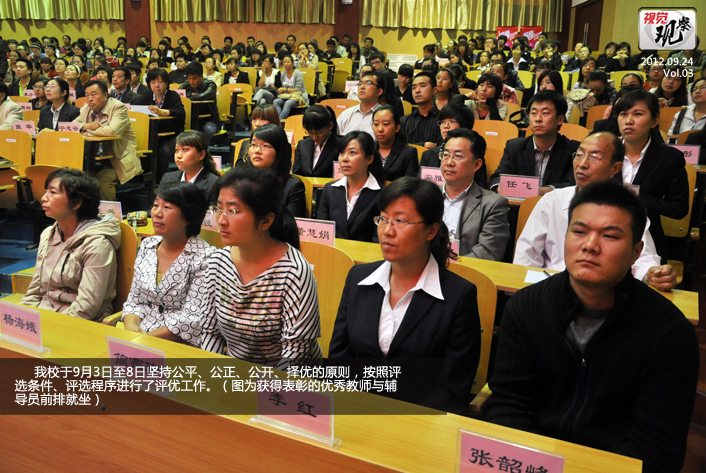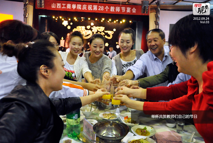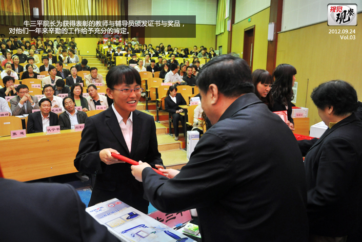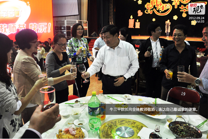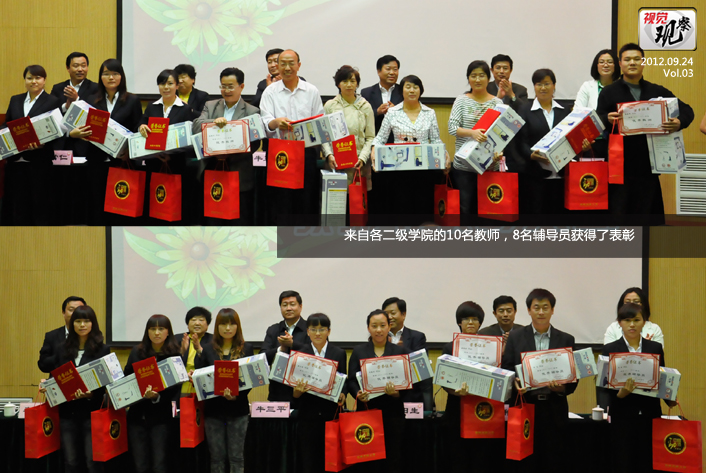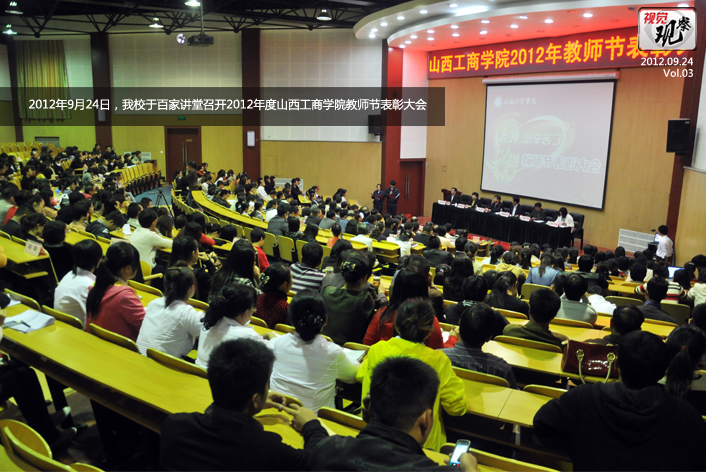 2012年9月22日,我校百家讲堂内400多名工商教职工欢聚一堂,隆重举行了2011-2012学年教师节表彰大会。经各部门评选推荐,人事处审查,学校院务委员会审议通过,我校对王芳等10名优秀教师,冯帆等8名优秀辅导员进行了表彰。 表彰会结束后,大家又来到文体馆聚餐联欢。酒杯盛满了喜悦,笑容洋溢着欢乐。牛院长再次致辞,表达了对奉献工商的教职员工衷心的感谢,并无比深情地道一声:“老师,您辛苦了!”