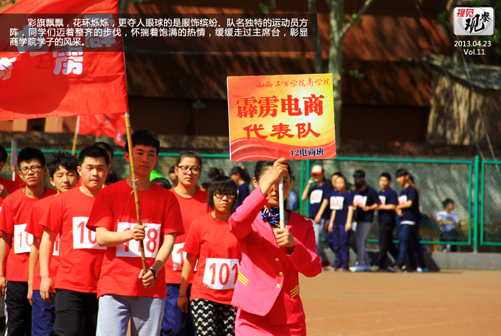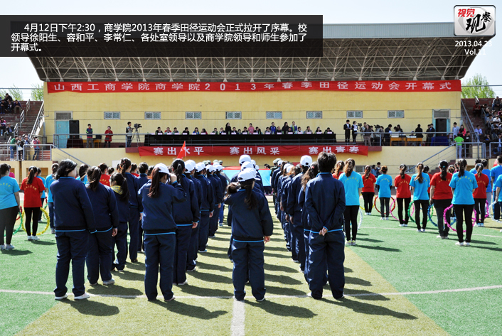 春意盎然,煦风送暖。经过多日的训练,多日的期盼,4月12日下午2:30,商学院2013年春季田径运动会正式拉开了序幕。校领导徐阳生、容和平、李常仁、各处室领导以及商学院领导和师生参加了开幕式。 开幕式上异彩纷呈,充分展示了工商style。首先入场的是国旗、校旗、院旗方队,队列整齐,精神抖擞,展示了工商军事化管理的特色。彩旗飘飘,花环烁烁,更夺人眼球的是服饰缤纷、队名独特的运动员方阵,同学们迈着整齐的步伐,怀揣着饱满的热情,缓缓走过主席台,彰显商学院学子的风采。紧接着便是广播体操表演和商学院style舞蹈,激荡起全场热情澎湃的气氛。商学院张文英书记激情致辞,指出运动会是力与美的结合,速与度的挑战,能够锻炼同学们的身心素质,希望大家赛出风格,赛出水平。最后党委徐阳生书记庄严宣布运动会正式开幕。 在径赛赛场上最扣人心弦的莫过于男子100米了,运动员仿若离弦的剑,眨眼间,比赛已经结束了。如果说100米玩的是心跳,那么女子4×100米接力则比的是默契,接力棒传递的正是人与人之间的信任。在田赛赛场上,同学们用标尺丈量人生的高度,用腾跃诠释理想的诉求,用双手托举时代的重量,他们都是好样的。 此次活动将进一步增强了大学生的集体意识,促进大学生体育运动水平的不断提高,展示当代大学生的精神风貌,丰富大学生的校园文化生活,使顽强不息,艰苦奋斗的精神得以传扬;同时也反映出商学院对于体育运动的重视,也体现了促进学生素质全面发展,培养新时代人才的教育要求。 (商学院来稿,彭霞玲编辑)