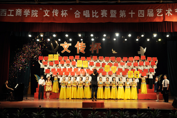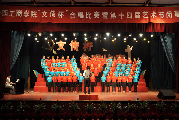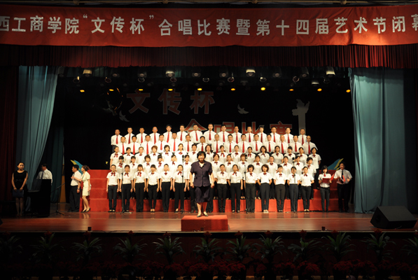 上一图集:我院隆重举行阳光体育活动冬季长跑运动 下一图集:心理健康宣传周浏览次数:846次 发布时间:2011/12/266月17日下午,我院“文传杯”合唱比赛和第十四届校园文化艺术节闭幕式在文体馆隆重举行。牛三平院长、徐阳生书记、陈教兰副院长、容和平副院长、院长助理张中华出席闭幕式。15时许,闭幕式开始。本次歌咏比赛的承办单位文传系的王艳华书记首先致辞,然后牛三平院长致闭幕词。牛院长指出,我院第十四届校园文化艺术节开幕一个多月来,学院党政领导高度重视,各职能部门大力支持,各系部精心组织策划,指导老师认真辅导,广大师生踊跃参与,先后开展了红歌大赛、篮球联赛、职业生涯设计大赛、素质拓展大赛、交谊舞大赛、健美操大赛、辩论比赛等一系列丰富多彩的活动,全院充溢着积极向上、健康高雅、文明和谐的文化氛围,使本届艺术节真正办成了一次校园文化艺术的盛会,把我院校园文化建设推向了一个新的高度。牛院长强调,本届艺术节即将划上一个圆满的句号,但是打造校园文化品牌,提升校园文化品位,是我们永无止境的努力目标。今年4月7日,国家教育部正式下文批准我院升格为本科院校。办学层次的提升,要求我们的整个教育教学工作包括校园文化建设都要相应地上到一个新的台阶。牛院长要求,本届艺术节闭幕之后,各相关部门、各系部要进行一次认真的回顾和总结,找出存在的不足,吸取成功的经验,使我院以后的校园文化艺术节办出新水平,越办越精彩。接下来的歌咏比赛以陈教兰副院长指挥、牛三平院长领唱、徐阳生书记、张中华助理参加的行政后勤人员大合唱《辉煌山西》开场。《辉煌山西》是一首新歌,曲调婉转悠扬,深切地赞颂了山西的秀美山川和悠久的历史文化,抒发了我省人民团结奋进开创千秋辉煌的豪迈情怀。“太行吕梁,千年回望,华夏文明的圣土,我的家乡……”,牛院长一曲引吭高歌,洪亮高亢的歌喉,娴熟的演唱技巧激起了同学们的一片欢呼和喝彩。然后教辅人员、商务系、通才部、学历一系等我院11个系部代表队依次登场,合唱了《走进新时代》、《歌唱祖国》、《黄河大合唱》、《走向复兴》、《爱我中华》、《咱们工人有力量》、《到吴起镇》、《中国军魂》、《三个代表一面旗》等歌曲,唱响红色经典,唱响时代主旋律。今年适逢党的90华诞。伴随着铿锵有力的音乐节奏,整场歌咏比赛气势磅礴,昂扬向上,激情奔放,高潮迭起,倾情抒发了大家爱党、爱国、爱人民的时代豪情,唱出了师生们的共同心声。放飞梦想,收获希望,让每一首歌化作彩虹装扮盛世中华,每一首歌都激励着我们书写更加辉煌的时代篇章。在艺术系表演队的大合唱《香格里拉》歌声中,歌咏比赛圆满结束。最后,陈教兰副院长宣读了合唱比赛获奖名单以及文化艺术节期间各项比赛获奖名单。牛三平院长、徐阳生书记、陈教兰副院长等领导向先进集体、优秀个人等奖项的获得者颁发了锦旗和奖状,我院第十四届校园文化艺术节圆满落下帷幕。
