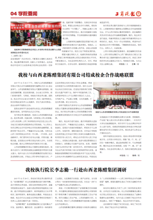 我校与山西老陈醋集团有限公司结成校企合作战略联盟