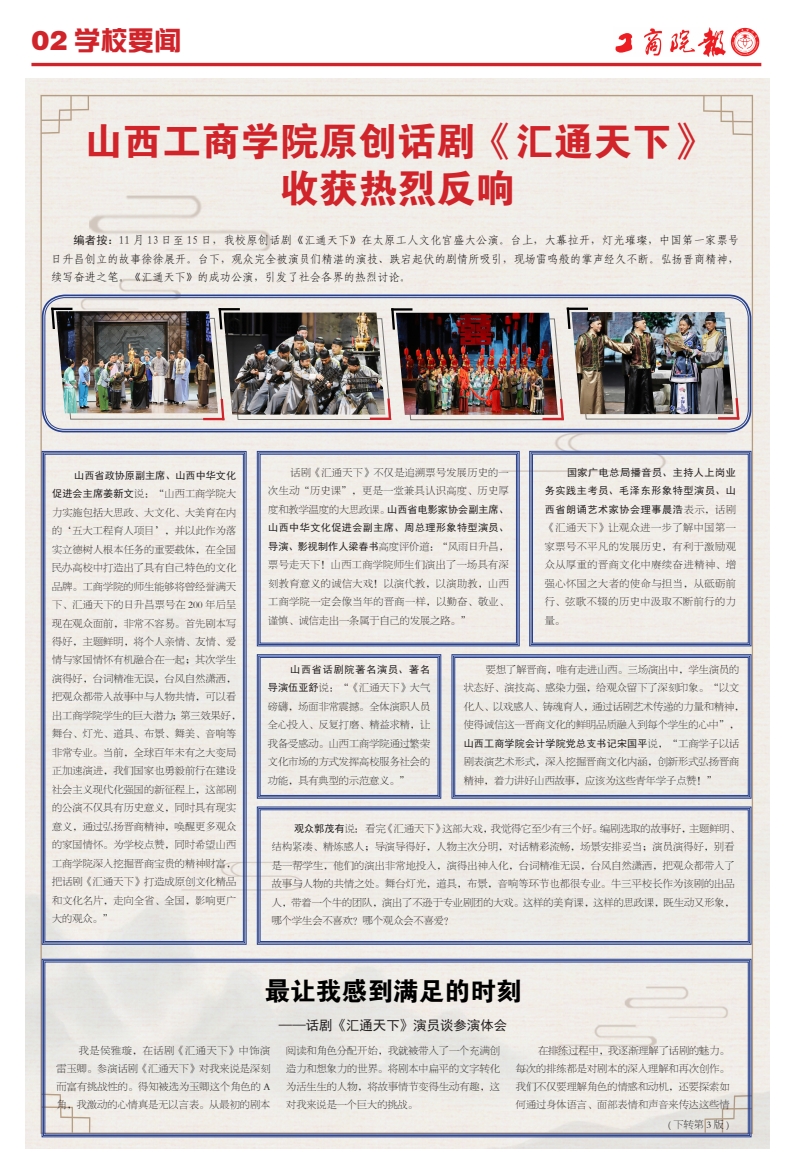 山西工商学院原创话剧《汇通天下》收获热烈反响