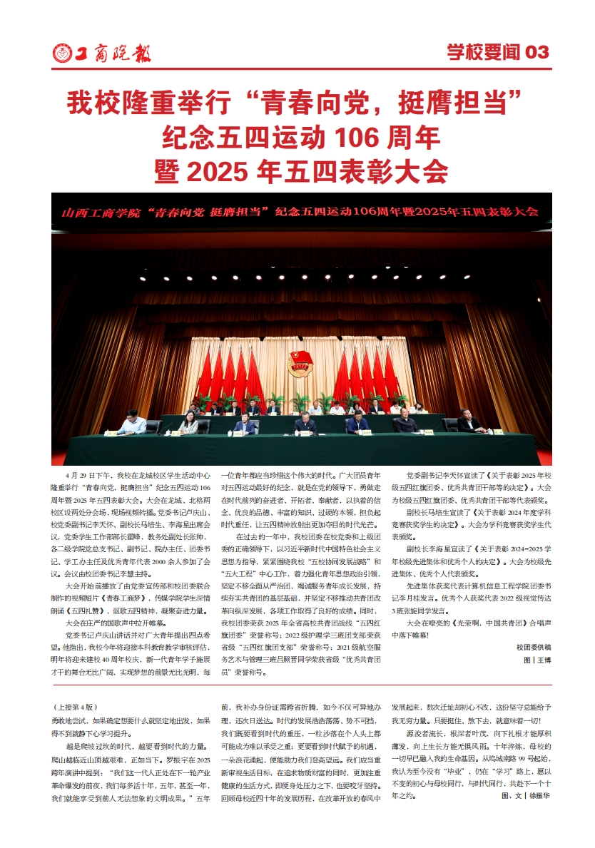 我校隆重举行“青春向党,挺膺担当”纪念五四运动10