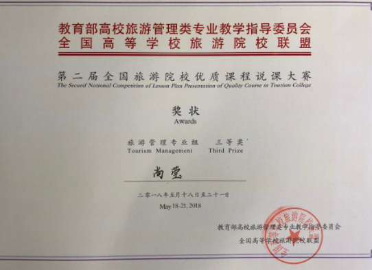 2018年第二届全国旅游院校优质课程说课大赛三等奖